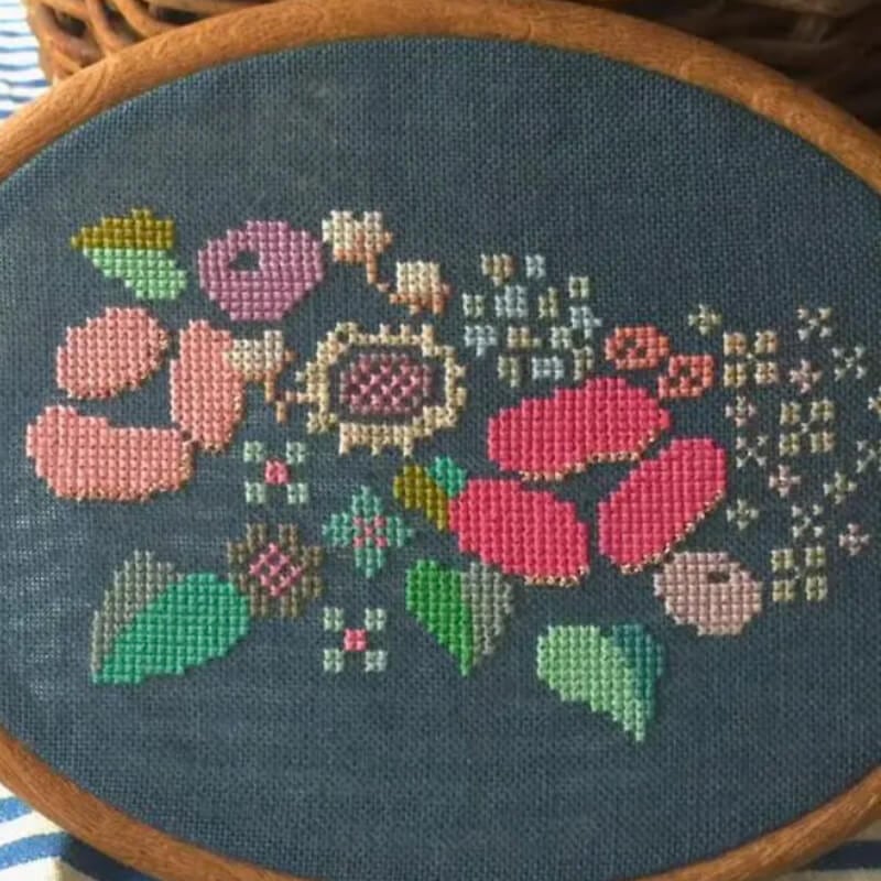 リネンは織り糸を数えて刺すため、ジャバクロスで刺すよりも少しややこしくなります。細かいものが見えにくい方は老眼鏡などでピントを合わせていただくとスムーズです。